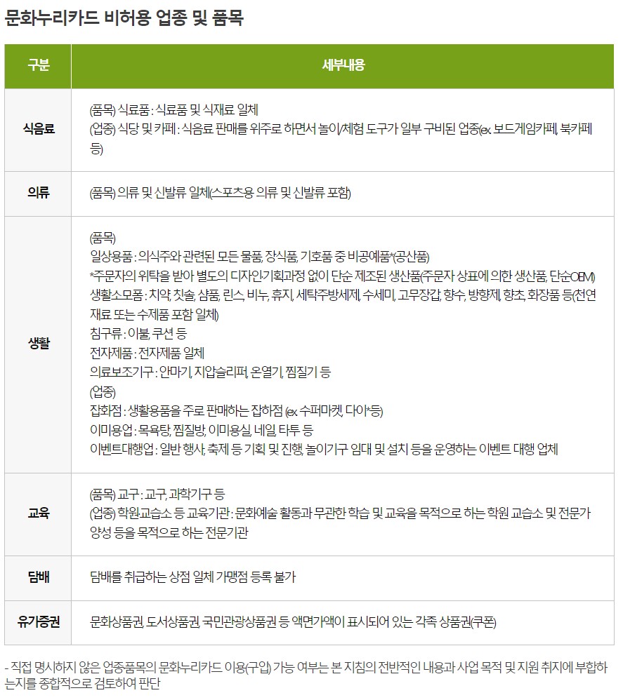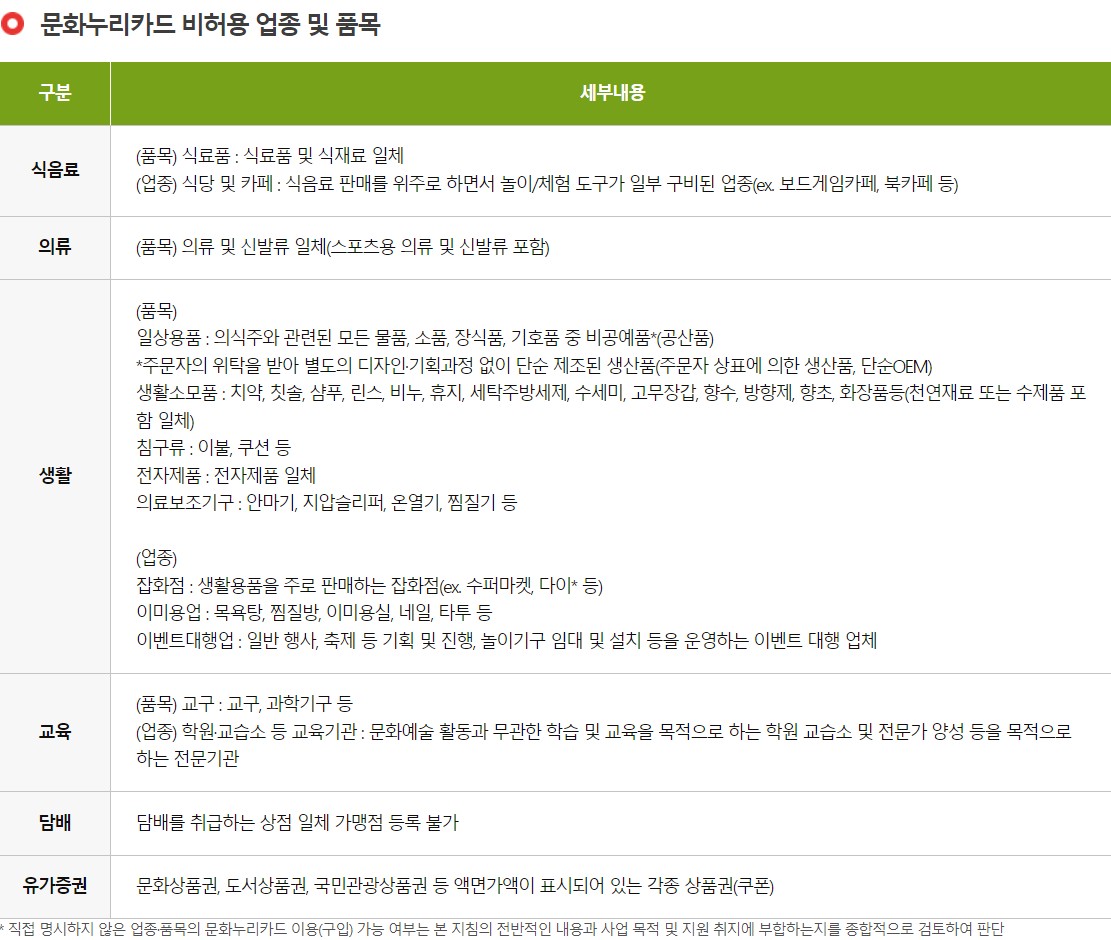 - G마켓: 다양한 문화 관련 상품을 제공하는 온라인 쇼핑몰로, 문화누리카드 사용이 가능합니다.